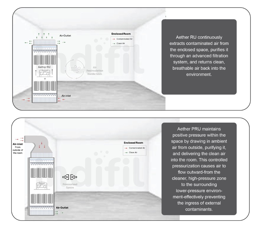 Indifil Aether Series, Stand Alone Purification System is an advanced activated carbon filter solution designed to remove toxic, corrosive, and odorous gases from air streams in critical environments. Engineered with high-capacity adsorption media, Aether K ensures reliable performance in industrial applications, and sensitive spaces like data centers, control rooms, electrical rooms, museums, laboratories, and healthcare facilities. Its optimized design delivers superior gas-phase filtration while maintaining low pressure drop, enabling energy-efficient operation and extended service life.